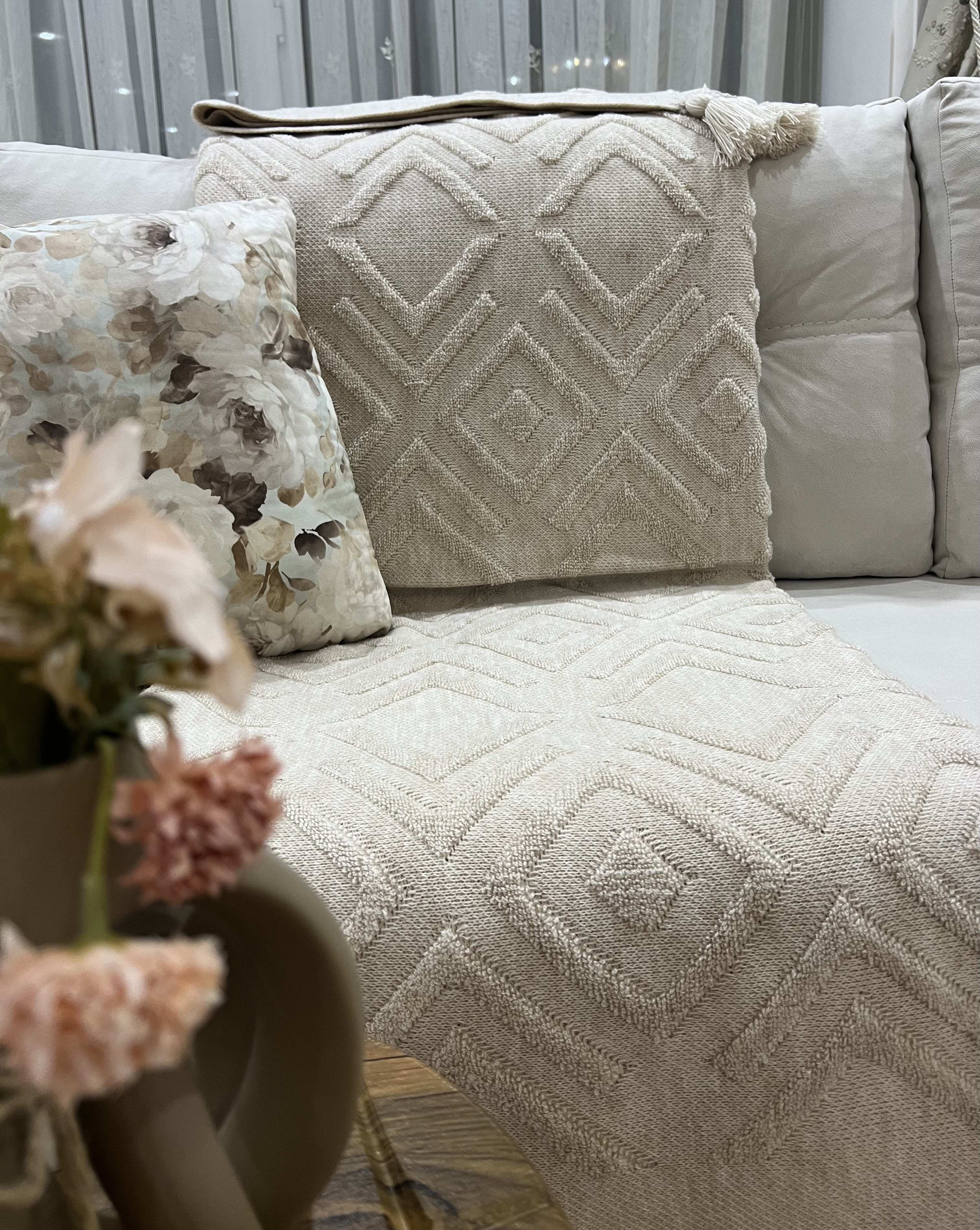 ▫️شال مبل طرح پانچ نخی ۱۰۰٪مناسب مبل ۳نفره از برند کاندیش✨